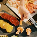 A Barcelona városi ingatlan étteremmel reggelente büfé reggelit szolgál fel. A Barcelona városi hotelben a Mezza étterem található.